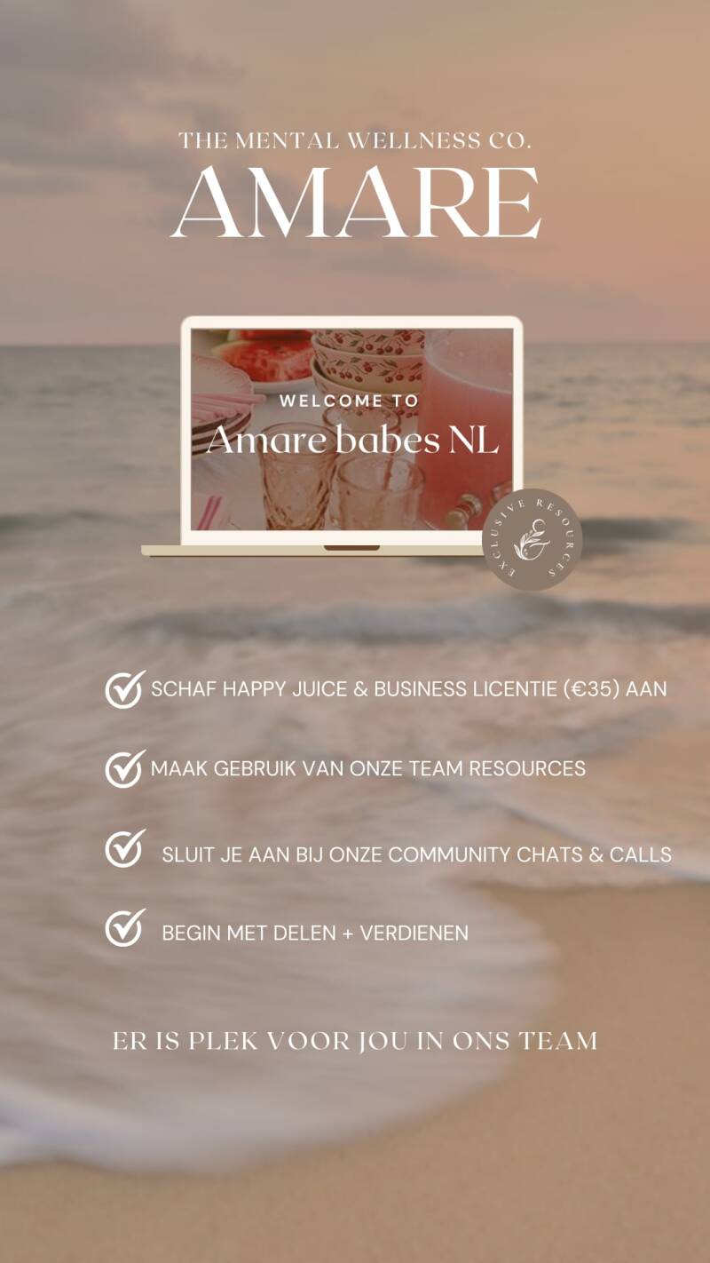 Happy Juice is een een product van Amare, dé mental welness company. Hun missie is een welzijnsrevolutie te creëren met meer mentale gezondheid in de wereld.